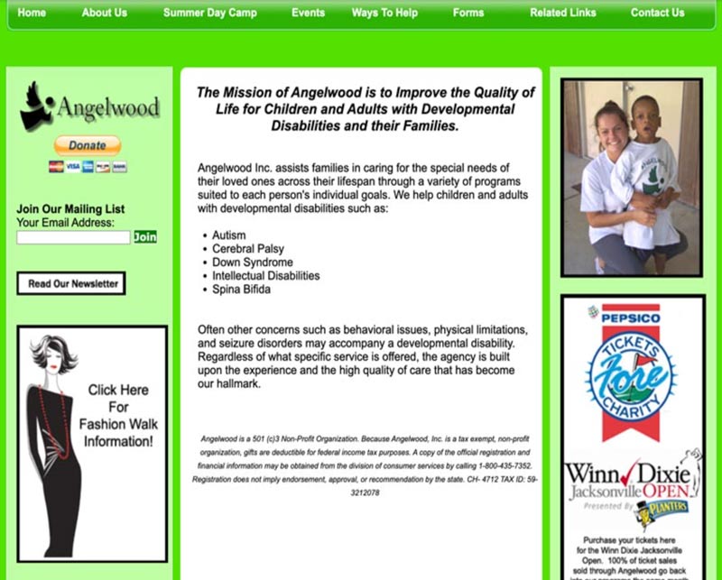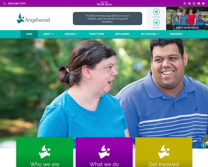 Angelwood is a Jacksonville nonprofit dedicated to children, adults and families living with disabilities. through residential, employment, and community programs. The organization serves families across Northeast Florida and relies on its website to communicate programs, services, and opportunities for community involvement.